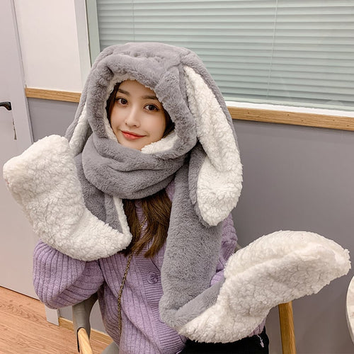 Cute Rabbit Ears Plush Hat Scarf and Gloves Set